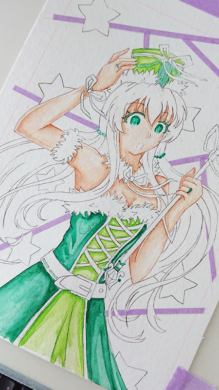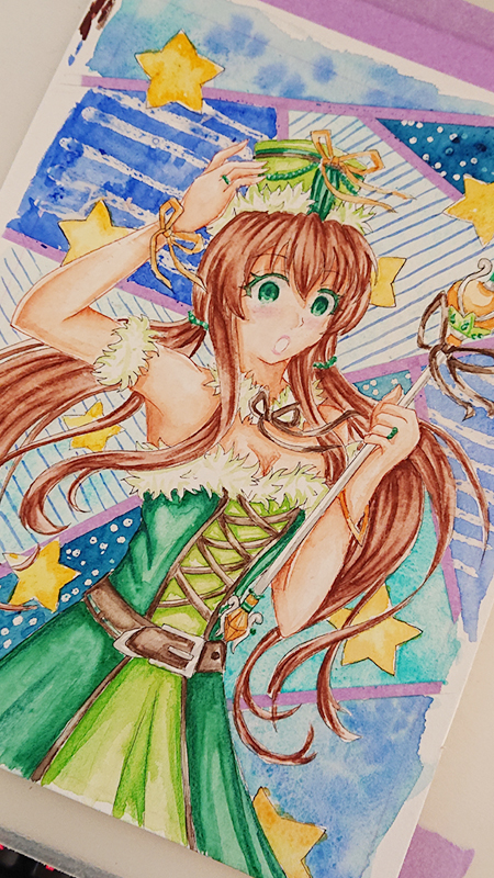 Kommentar des Künstlers, Yuuka: Im Mai diesen Jahres, war ich bei meiner Mutter zu besuch und fand im Gästezimmer an der Wand eine unglaublich alte Zeichnung von mir, die ich ihr Geschenkt hatte, aber schon in all den Jahren vergaß dass sie mal entstand. Also knippste ich es mir heimlich mit dem Handy ab um ihr daraus ein kleines Redraw zu zeichnen. Und hier sit das Ergebniss! Das alte war noch DinA1 groß und nur mit Aquarell Bunstiften coloriert. Das neue dagegen nun mit sauberen Multiliner outlines und coloriert mit meinen geliebten Aquarellfarben. Ich habe versucht möglichst viel aus dem alten Bild wieder zu übernehmen, nur mit meinem aktuellen können! Hier geht es zum Redraw-Vergleich |