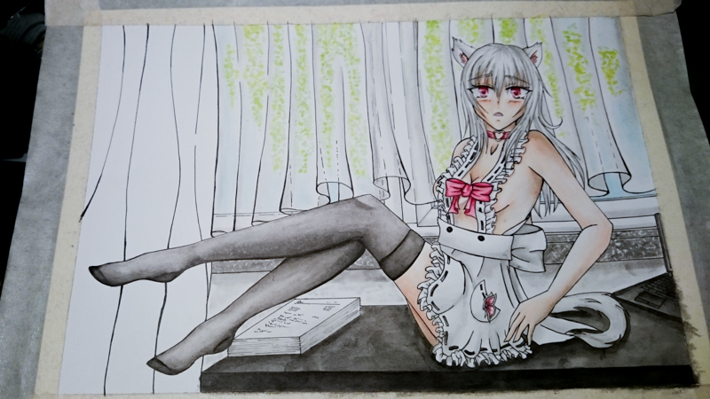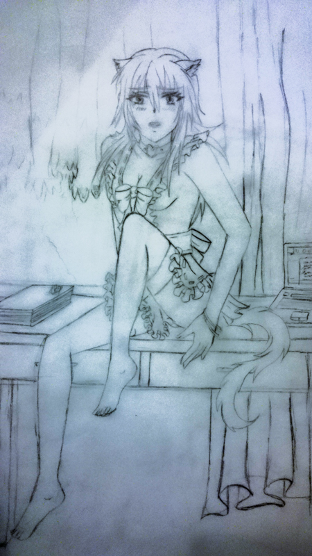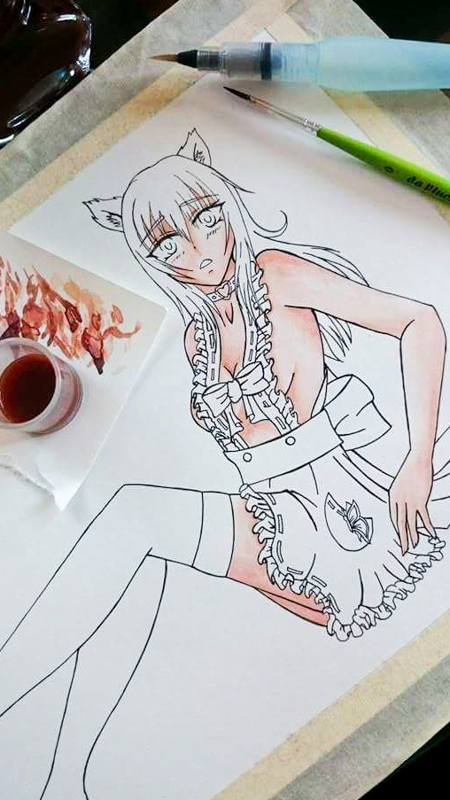 Kommentar des Künstlers, Yuuka: Die erste Skizze zu diesen Bild entstand schon im Januar 2015. Erst ein halbes Jahr später fand ich die Zeit daran weiter zu malen. Bis dahin gefiel mir die Skizze allerdings nicht mehr und ich begann eine neue Dynamischere Version zu zeichnen. Hier das Ergebnis. Auch wenn ich fasst nur noch mit Tusche und Bleistift Lines arbeite. Habe ich mich hier seit langem mal wieder An eine vollständige Tusche Arbeit getraut. |