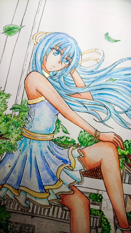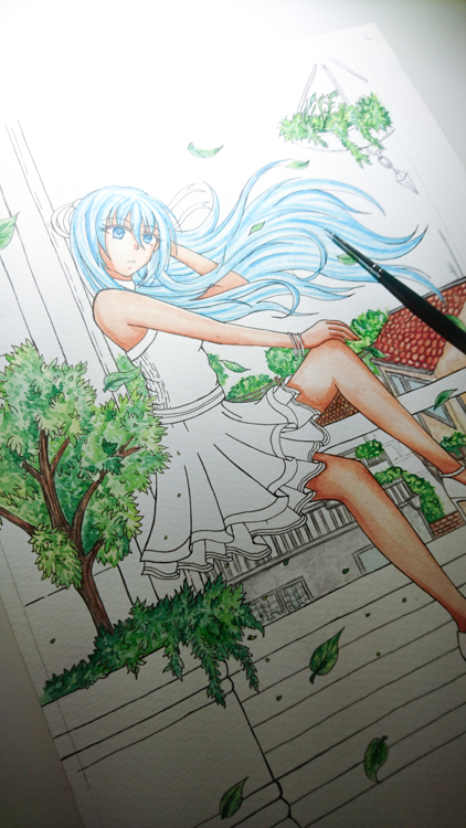 Kommentar des Künstlers, Yuuka: Ich wollte unbedingt endlich einmal ein Sommerliches Motiv zeichnen,dank aller Kirschblüten und Frühlings-Liebe, entstehen meistens Frühlings-Bilder um so mehr wurde es Zeit für ein Sommerliches Motiv. Nun, ich wählte einen Charakter der für dem Sommer am aller wenigsten passte. Minja Kaeo aus Legend of WindiX die Eisdämonin im Sommer. Ich finde der Look steht ihr eigentlich sehr gut! Mein Hauptpunkt lag tatsächlich auf dem Hintergrund, so wie auf dem Spiel mit Licht. Also die Farben des Himmels, die Helligkeit der Sonne. Und dieser Blick überein kleines Wohnviertel der Stadt Soyakaze. Ich mag es eigentlich sehr gerne! Und hoffe es gibt auch unter euch ein paar Fans! |