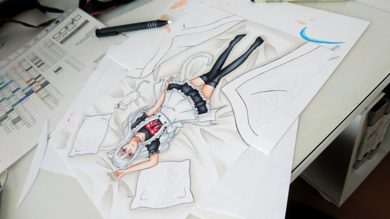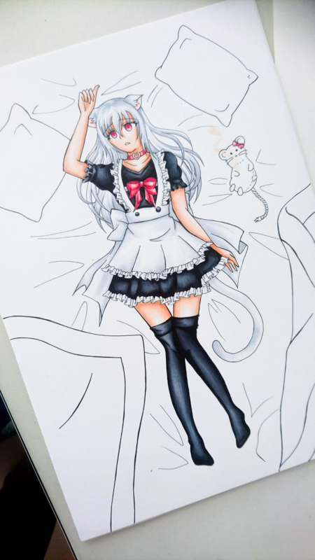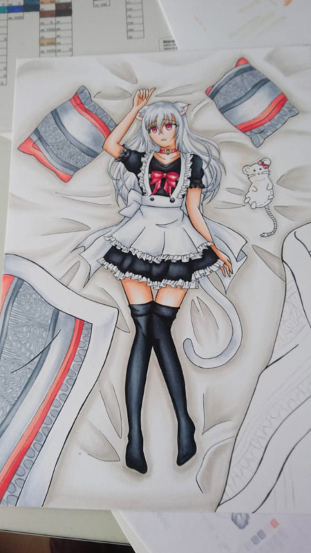 Kommentar des Künstlers, Yuuka: Wenn ich vorstellen darf: Mein aller erstes Copic Werk nach über 10 Jahren! Ich konnte damals diesen Marken absolut nichts abgewinnen. Vermutlich wegen meiner fehlenden Erfahrung im Umgang mit Zeichen Material. Nun aber hat mich das ganze soooo sehr gereizt das ich Lust hatte mich nochmal daran zu versuchen und siehe da, ich finde es ist auch ohne Übung, schon sehr ansehnlich! Warum es ausgerechnet meine OC Kasuki... im Dakimakura Style sein musste... weiß ich selber nicht. Ich hatte einfach wirklich Lust darauf und finde das ihr die Pose eigentlich sehr gut steht! |
