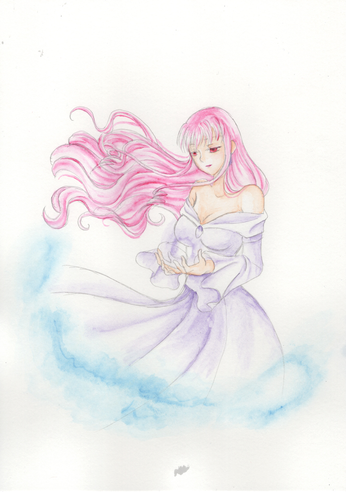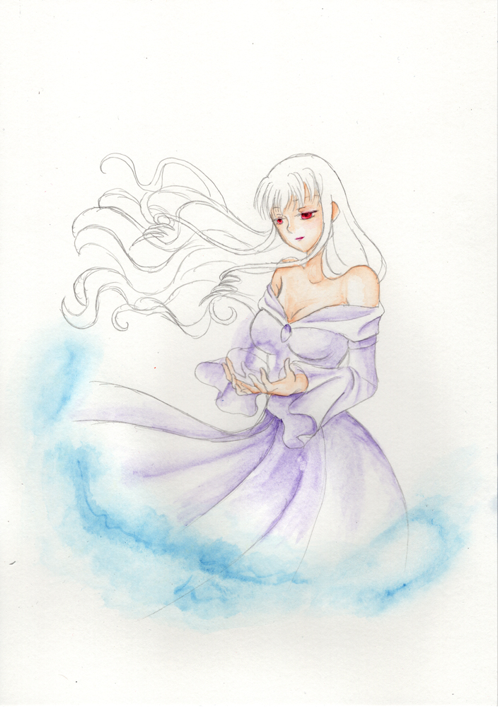 Bildgröße: A4 Arbeitszeit: n/A Techniken: Aquarell, Buntstifte Story: Central Hell Goddess | |