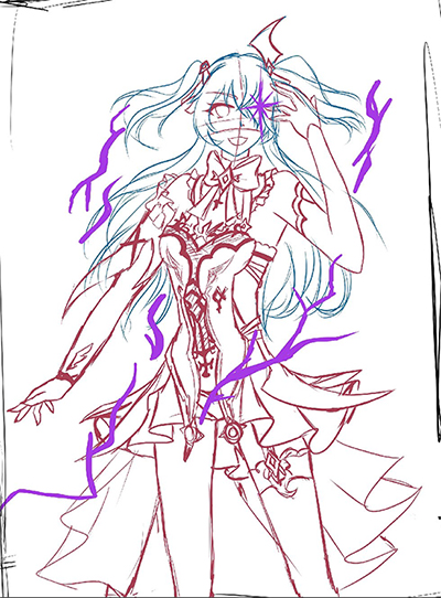 Und naja, ich habe mich direkt in diverse Designs verliebt! Ich bin ja ech anfällig für solche Dinge. Nach ein wenig spielen verliebte ich mich dann aber in Fischl. Ihr Kampfstil und ihr Design gefallen mir einfach so verdammt gut, das unbedingt ein Fanart her musste.