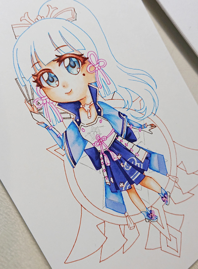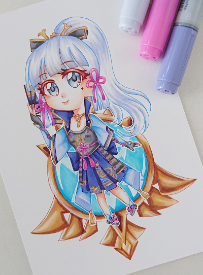 Ich hatte lust auf Genshin Impact Chibis und nachdem ich mich für keinen Charakter entscheiden konnte, wurde es nun auf wunsch meines Mannes Ayaka Kamisato. Auch wenn sie NOCH nicht im Spiel ist, finde ich ihr Design einfach mega hübsch und hatte entsürechend richtig lust drauf!