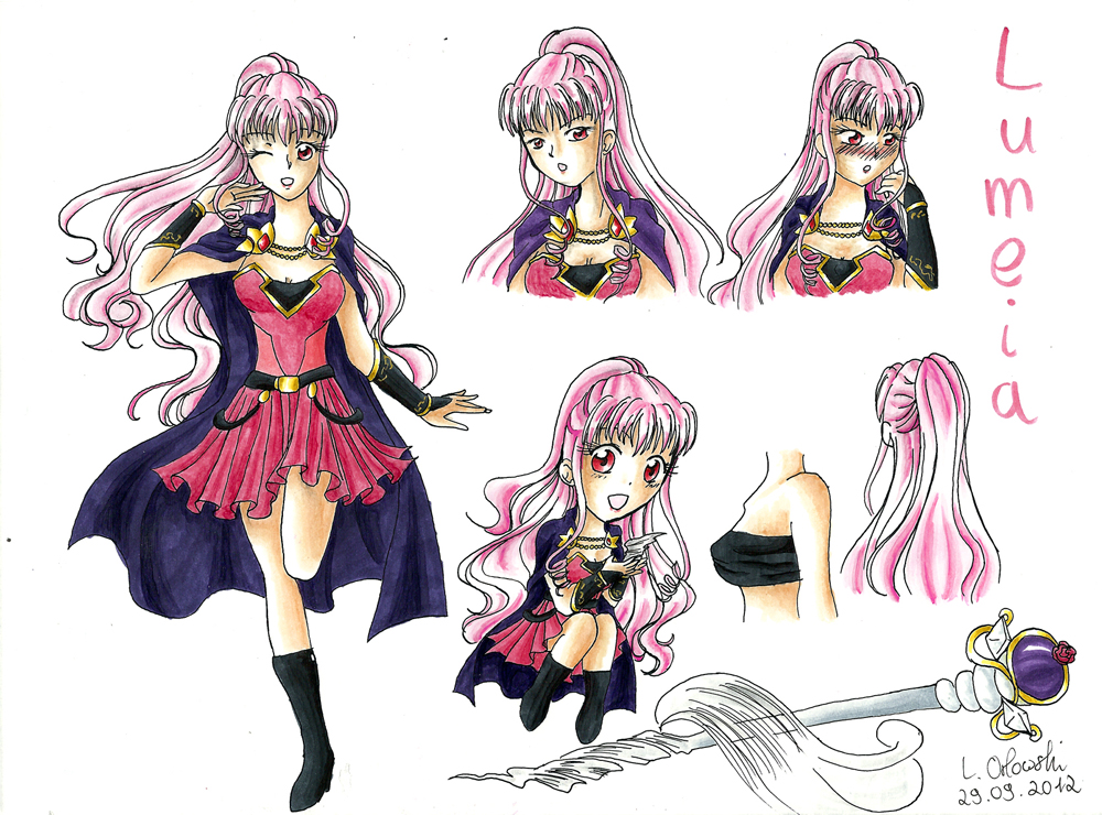 Als Prinzessin und Thronerbin des Windvolkes, ist Lumeia eine sehr mächtige Magierin. Ihre große Stärke liegt hierbei bei Schutz- und Heilzaubern, wohingegen sie schwerwiegende Probleme im Bezug auf Angriff hat. Da sie bisher immer von ausreichend Wachen beschützt wurde, war das für sie jedoch bisher kein Problem. Zudem gilt sie als eine der hübschesten Frauen ihres Volkes. |