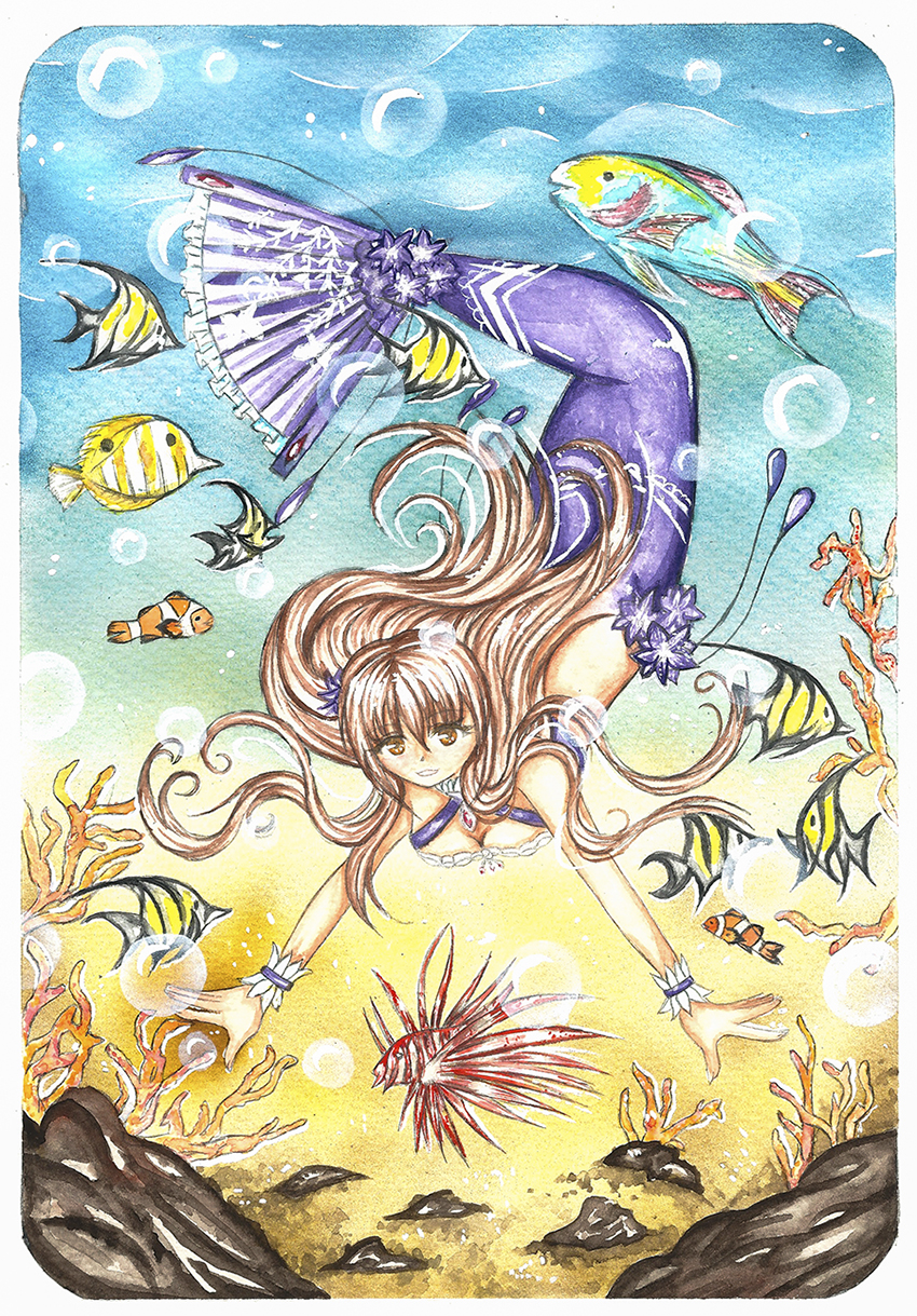 Als er Nachts an der Wasser Oberfläche bei Mondlicht schwamm entdeckte er ein kleines Boot, vorsichtig aber neugierig, beobachtet er dieses. Stellte aber fest dass darauf ein Mensch schlief. Vor ihm eine kleine Staffelei und einige Farben, vermutlich versuchte er den Mond zu malen. Die Syralis blickte in das Boot und schnell griff er in die Farben. Er konnte nicht ganz erkennen was er erwischt hatte. Aber er drehte die kleine Falsche auf und Tropfte ein wenig der weißen Farbe mit der im Deckel angebrachten Pipette in sein Wunsch Flacon. Schnell legte er die Farbe wieder zurück und ging wieder auf Abstand. Erschöpft legte er sich dann aber schlafen. Als er durch ein kitzeln auf seiner Nase aufwachte, wunderte er sich das er wohl mit dem Kopf über dem Wasser einschlief, hoffentlich hatte ihn keiner Entdeckt. Er öffnete die Augen und erblickte ein wunderschönes Geschöpf, wie er wohl gelernt hatte ein Schmetterling. Genau so etwas Wunderschönes wollte er haben. Bei dem Versuch das Tier zu Fragen, riss er ihm versehentlich einen Fühler ab. Es tat ihm leid, er wollte ihn nicht verletzen. Und damit dieses Opfer nicht umsonst gewesen war, legte er dennoch auch diesen Fühler in das Flacon. Durch das Sammeln der Zutaten hatte er nun ein furchtbar Schlechtes Gewissen, seine Ersparnisse geopfert. Er wollte zu viel für sein ‚perfektes‘ Ziel und wusste nicht ob er sich noch als Syralis mit einem reinen Herzen bezeichnen könnte.