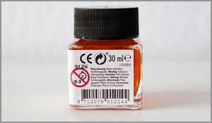 Die Farben werden in stabilen Glasfläschen gebrauchsfertig abgefüllt und mit einem Deckel ausgestatt welcher seltenst am Glas festklebt.