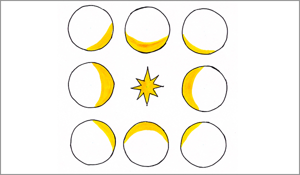In der Mitter der Stern ist unsere Lichtquelle. Die Kreise am Rand stellen die Kugel dar in verschiedenen Positionen.
