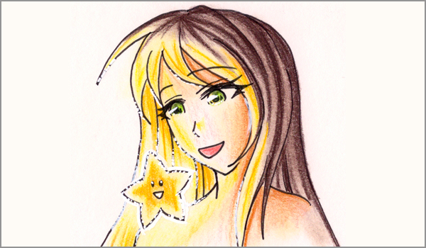 Als erstes colorieren wir das Zentrum unserer Lichtquelle. Bei meinem Beispiel die mitte des Sternes mit dem Dunkelsten Farbton (Dunkelgelb/Orange).